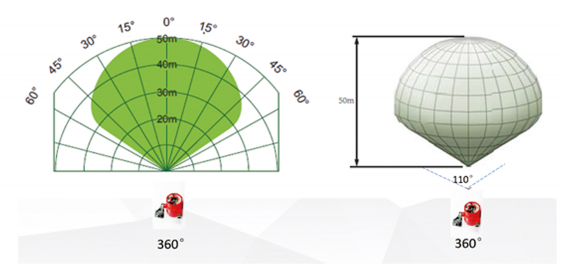 探測器距離增加一倍,那么只有1/4的輻射可能到達(dá)探測器。 例如:能在20米距離探測到0.1平方米(33cmx33cm)的甲烷火的IR3火焰探測器,如果安裝在40米探測距離,則最小火警需要0.4平方米。相反,在10米范圍內(nèi),只有0.025平方米就能出發(fā)報(bào)警。
